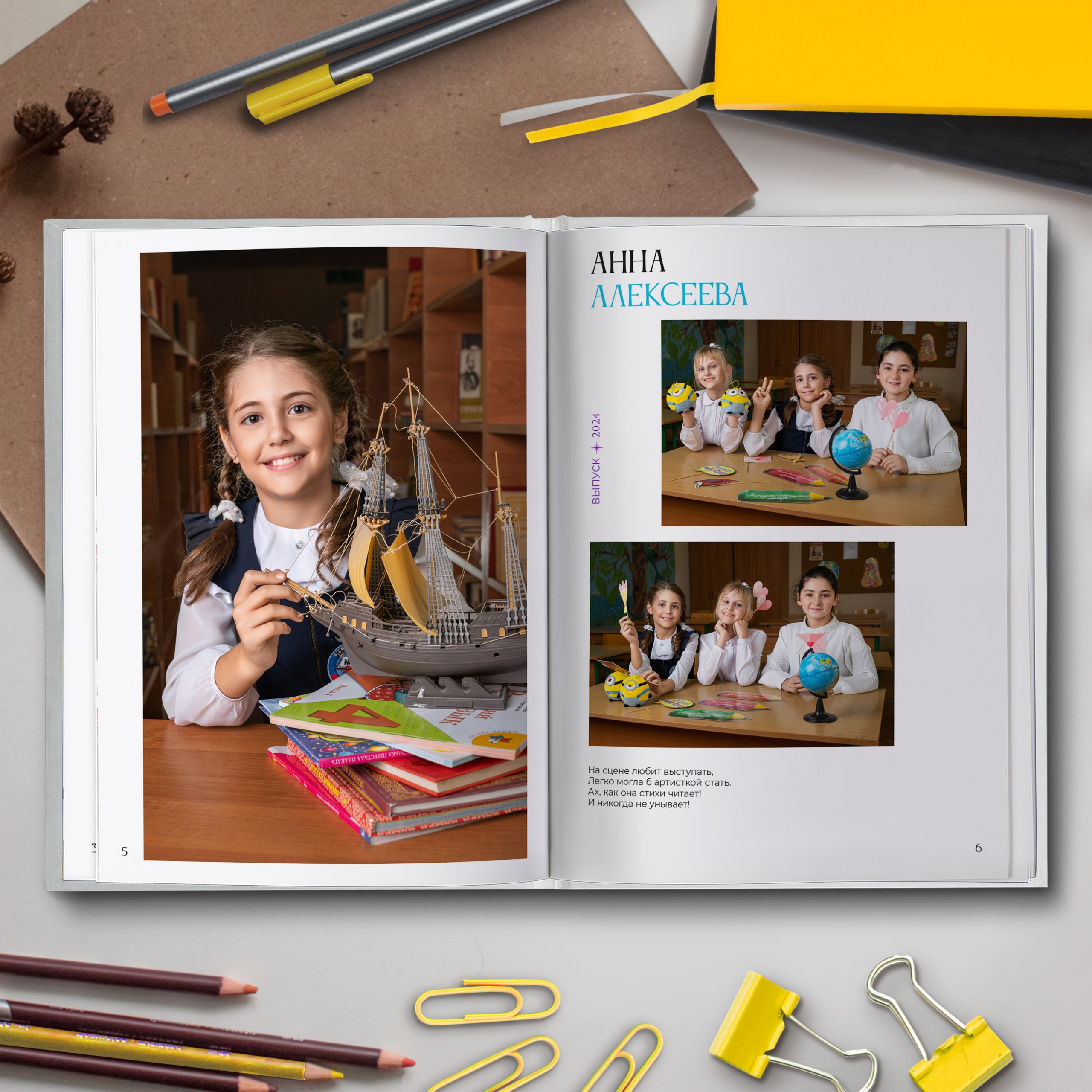 - Две личные страницы ученика с репортажными фото